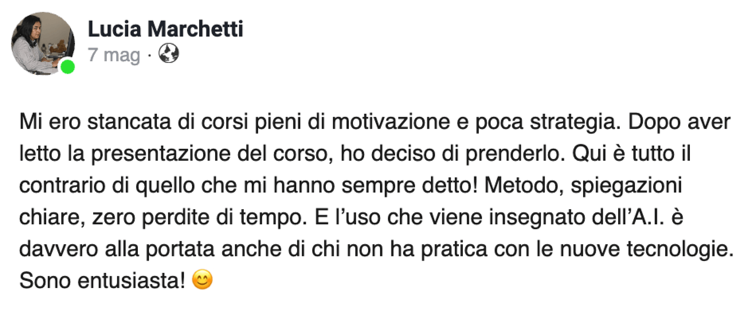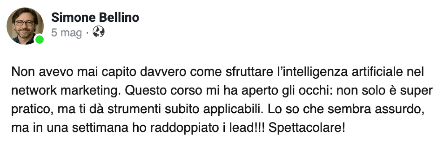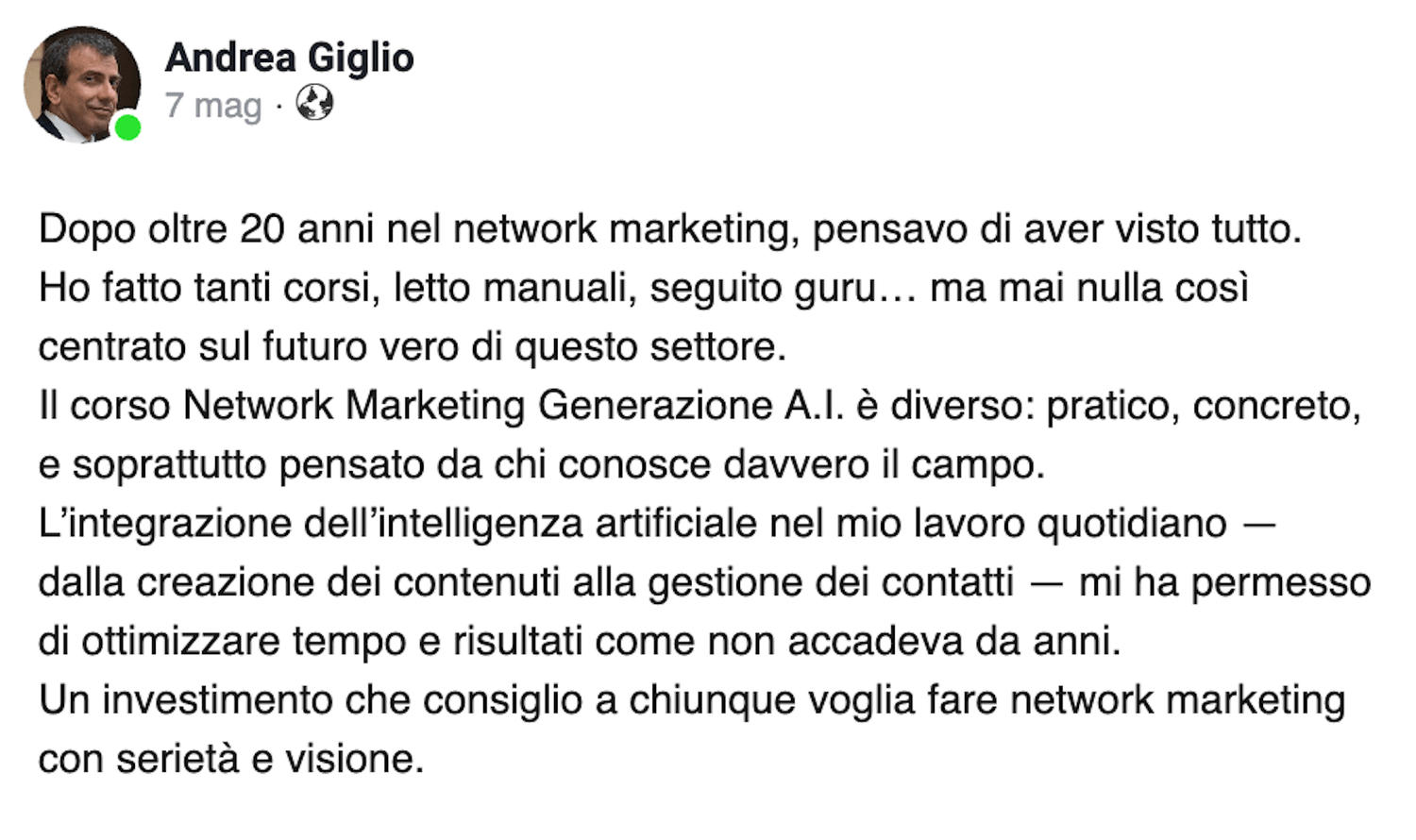 Cosa dice chi ha già acquistato il Corso Network Marketing Generazione A.I.
