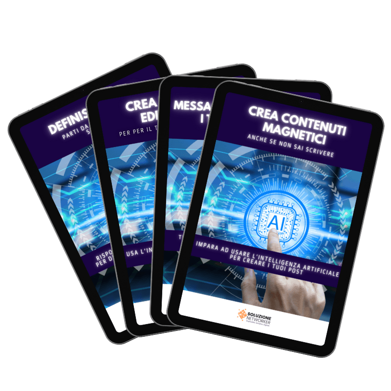 4 eBook con linee guida chiare, suggerimenti pratici e prompt mirati per ogni fase della strategia. Facili da applicare subito, pensati per aiutarti a creare contatti di qualità per il tuo Network.